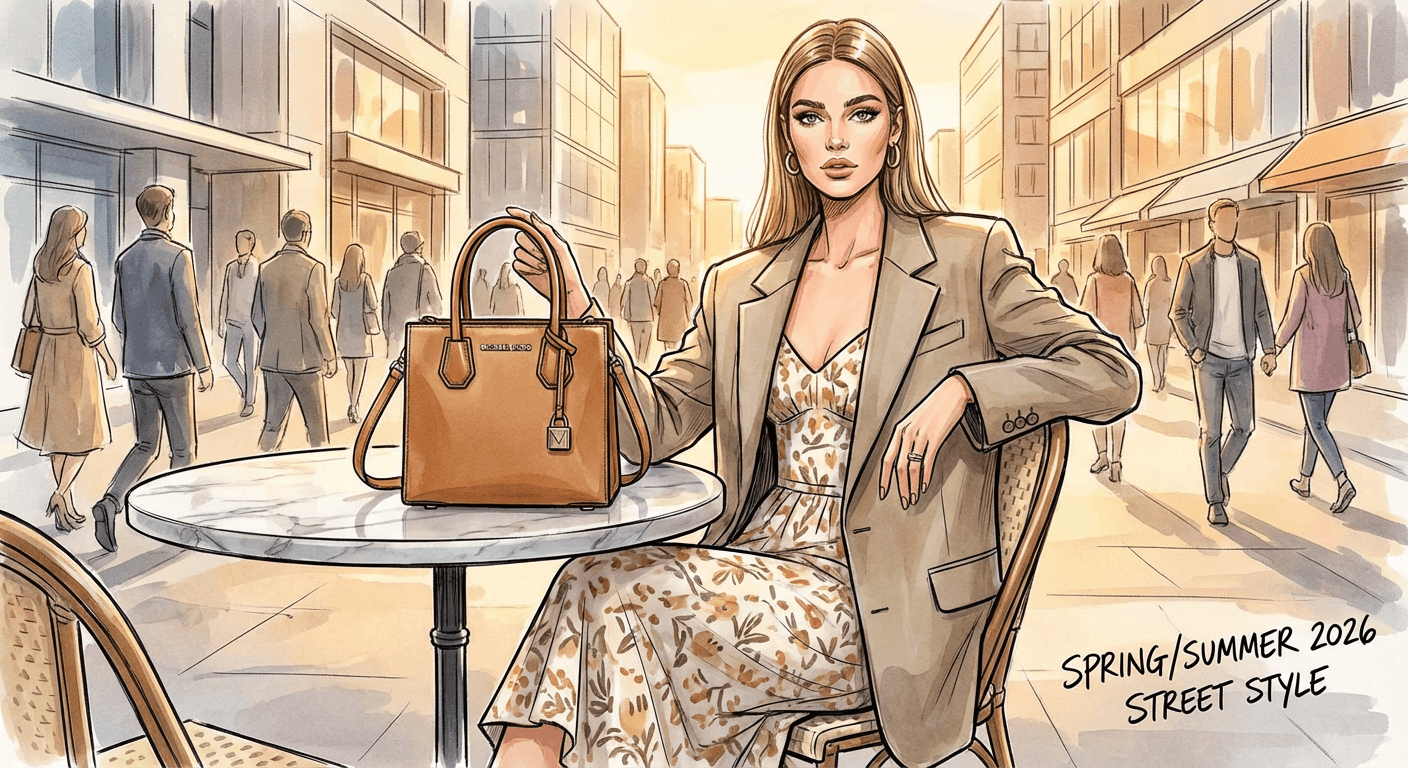 Michael Kors Mercer. Структурированная форма этой модели отсылает к винтажной эстетике 90-х годов, которая сейчас переживает ренессанс. Mercer выглядит более строго и официально, чем Jet Set, что делает её выбором номер один для офисных луков. Стилисты рекомендуют сочетать её с брючными костюмами свободного кроя.